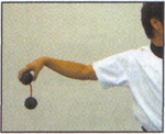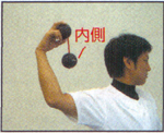 「ひじを上げてきて、そのとき手首はこうなって」 「でね、ひじは先に出てきて。。。」